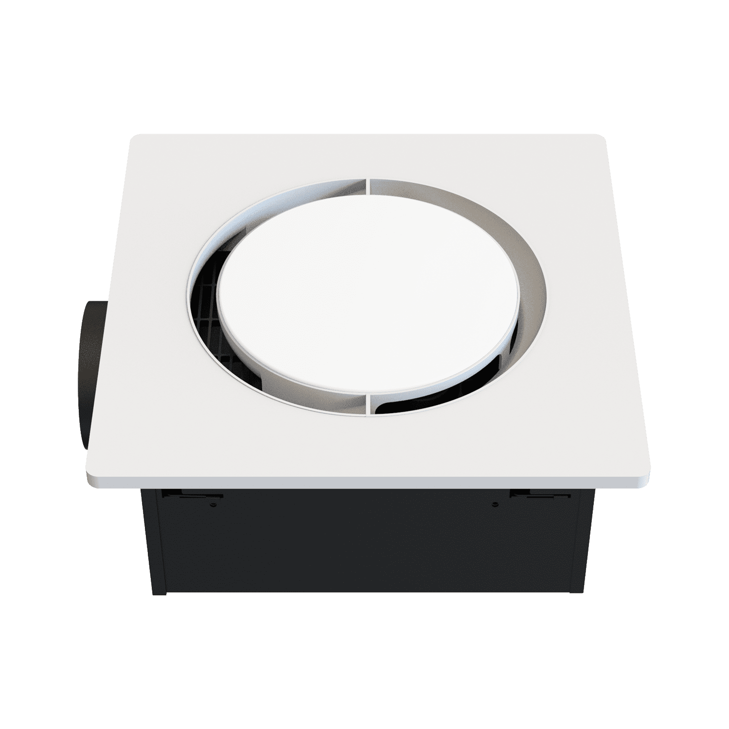 The ORBIS 4-In-1 Retrofit Line Bathroom Heater offers an ultra-modern circular appearance, designed to replace previously installed 3-In-1 Infrared models. Suitable for most contemporary bathroom designs, combined with the latest technology in PTC bathroom heater models. The 4-In-1 Functions include – Heater, Exhaust Fan, Circulating Fan, and Light Unit. Patented Heat Breeze Technology heats the room while offering low level condensation extraction in the bathroom. This Retrofit Line model features a single AC Motor, producing a 2150W output of powerful heat breeze and high-volume extraction at 300m3/h. A circulating fan to reduce warm temperature build up and a 12W LED Tri-Colour switchable light are also included. Complete with Digital Wall Controller, allowing easy switching from all modes. An ALL-OFF button for exiting is also included. Ideal for retrofit installations, where no extra switch wires are required, simply utilising two cores from the 5-core wiring that is existing from previous installation. Domus PTC Bathroom Heaters feature an advanced safety feature where the unit will automatically shut off after two hours in case it is left on accidentally. If the unit runs for two hours continuously, a safety function will automatically turn it off. This setting can be overridden and reset by pressing any switch on the controller within this two-hour period. Ideal for new and existing installations with a larger 390x390mm fascia frame, and a variable cutout size from 330x330mm to 350x350mm. This will cover most existing 2 and 4 Heat Infrared models. Accessories include Digital Controller Wall Controller, 3M Flexible Duct, and Exterior Grille. All Domus PTC Bathroom Heaters are backed by our 5 Year In-Home Warranty.
