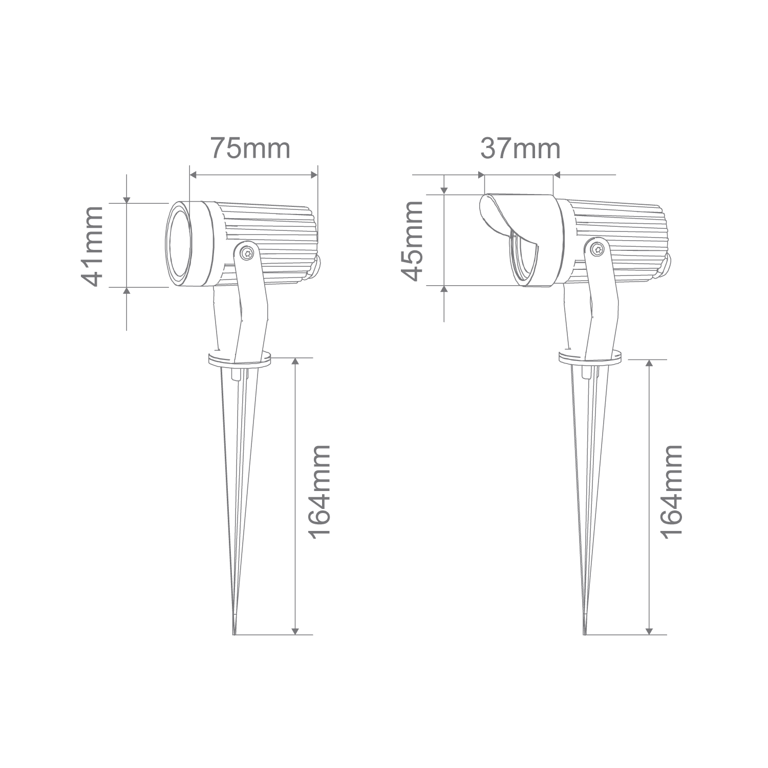 ZOOM-PRO Garden Spike Light Series offers a range of different lighting effects in the one box. Simply push the button on the fitting to change colour temperatures. Or simply add the cover cap for low glare applications. Featuring a high output LED chip, 40-degree beam angle, 150-degree tilt adjustable head and a black powder coated frame. Low voltage 12V/24V DC LED driver required. Complete with 3 metre round rubberised cable and water stopper for added protection from moisture entering the head unit. Backed by a 3 Year Replacement Warranty